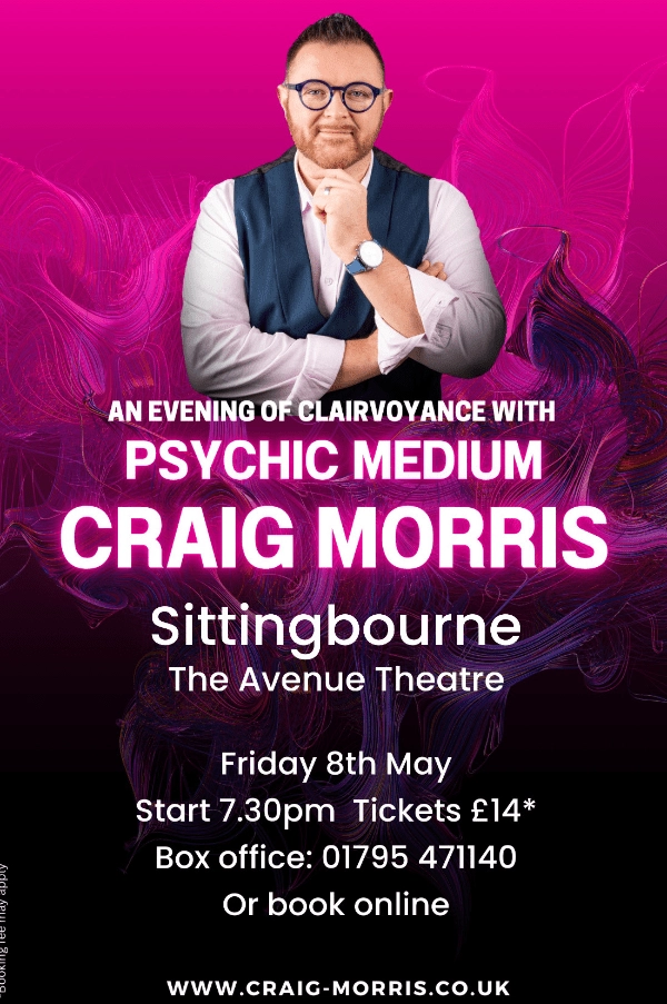 Experience An Evening of Clairvoyance with Psychic Medium Craig Morris at The Avenue Theatre in Sittingbourne. This live event brings Craig Morris to a local theatre setting for an evening focused on clairvoyance and spiritual insight. Tickets are now available through TicketSource for what promises to be a memorable night for anyone curious about mediumship, intuition and the possibilities of psychic connection.