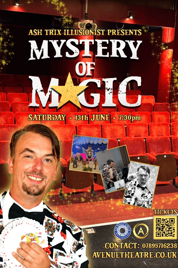 Experience an evening of wonder with Ash Trix Illusionist presents Mystery of Magic at The Avenue Theatre in Sittingbourne. This live magic show brings together classic sleight of hand, jaw dropping illusions and theatrical storytelling for a captivating performance. Expect moments of suspense, clever misdirection and unforgettable tricks that will keep audiences of all ages guessing. The production showcases Ash Trix's skill as a performer and conjurer, delivering polished routines and surprising reveals in a friendly, intimate theatre setting.
