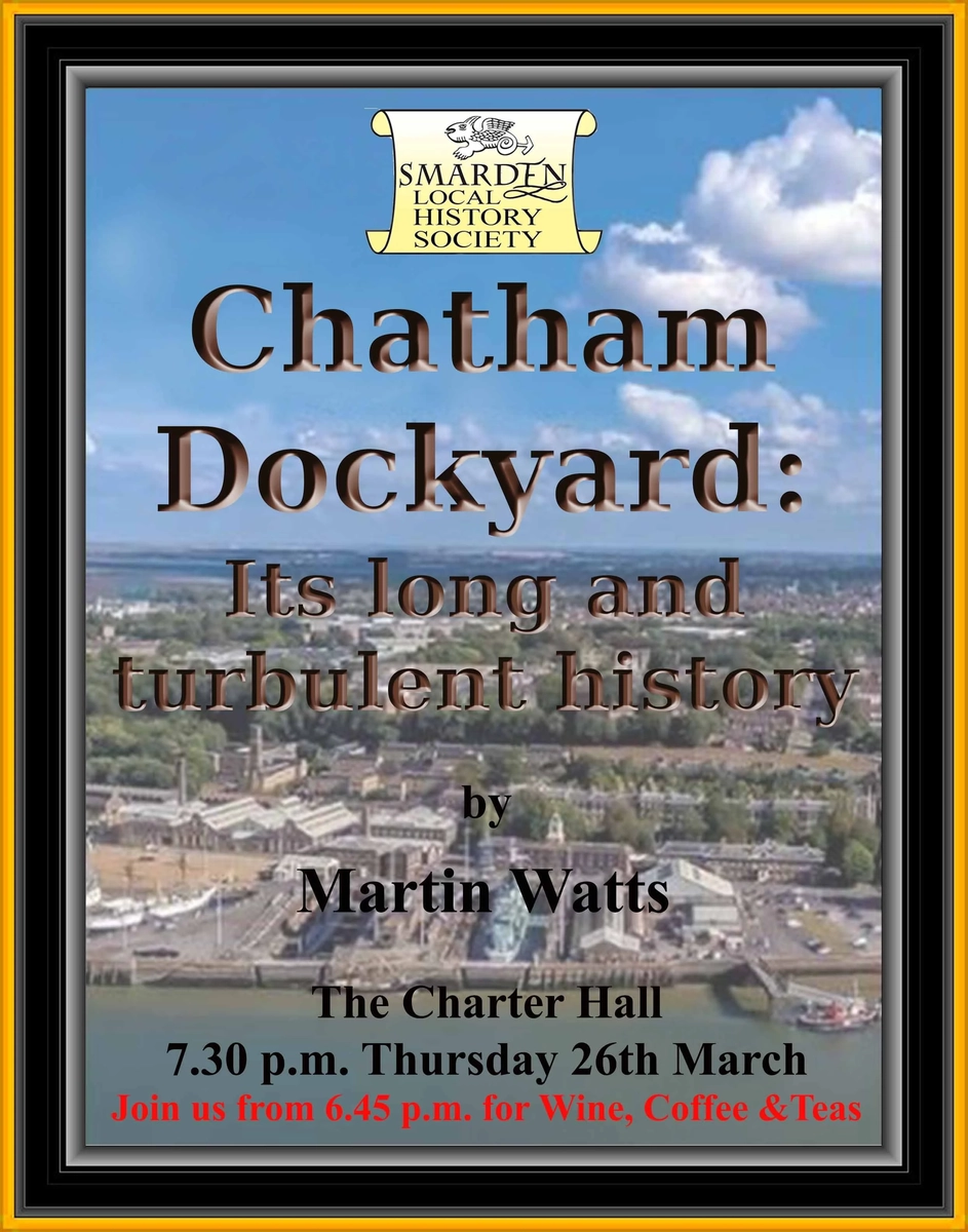 The event takes place at The Charter Hall, 2 Chessenden Lane, Smarden, Kent TN27 8NF on Thursday March 26th. Doors open at 6:45 pm and the talk starts at 7:30 pm. Guests are very welcome and there will be an opportunity to ask questions after the presentation. Whether you are a regular member of the society or visiting for the first time, this is a chance to hear a specialist speaker bring Chatham Dockyard's dramatic centuries to life in a friendly community setting.