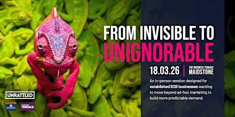 From Invisible to Unignorable is a practical 3-hour, in-person marketing workshop for established B2B businesses who want to move beyond referrals and random marketing. Led by Christine Moses and Paul Armstrong, this Maidstone session focuses on building clear positioning and messaging so your business looks more credible and wins more enquiries.
