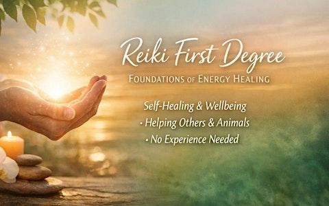 Reiki First Degree is a practical, day-long introduction to energy healing designed to support self-care, personal wellbeing, and gentle work with others and animals. This in-person course runs from 10am to 4pm and combines clear teaching, demonstration, discussion, and plenty of guided practice so you can bring Reiki into everyday life.