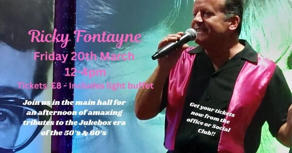 Spend a nostalgic afternoon with Ricky Fontayne in the main hall at Parkwood Community Association, Gillingham. This lively tribute performance celebrates the jukebox era of the 1950s and 1960s, bringing classic rock and roll, doo-wop and early pop back to life with authentic vocals and period style. Whether you remember the originals or you are discovering this music for the first time, Ricky Fontayne delivers a warm, energetic show that honours the songs and the spirit of the era.