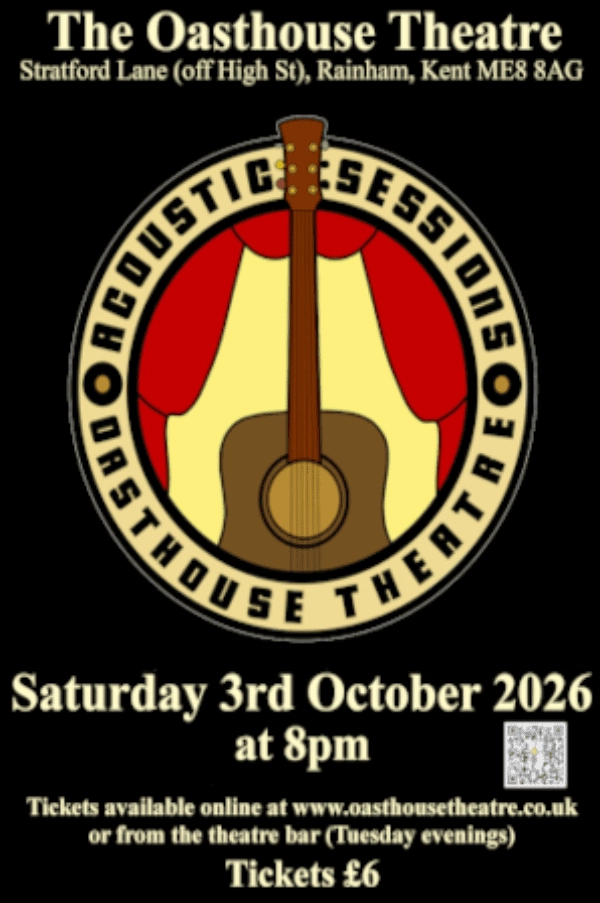 The Acoustic Sessions at Oasthouse Theatre in Rainham, Kent offers an intimate evening of acoustic music showcasing acts from around the region. Tickets are now available for this relaxed gig, which highlights singer-songwriters and small ensembles presenting stripped-back arrangements that put lyrics and musicianship front and centre. The setting at the Oasthouse Theatre is designed for up-close listening, giving audiences a chance to hear regional talent in a warm, friendly atmosphere.